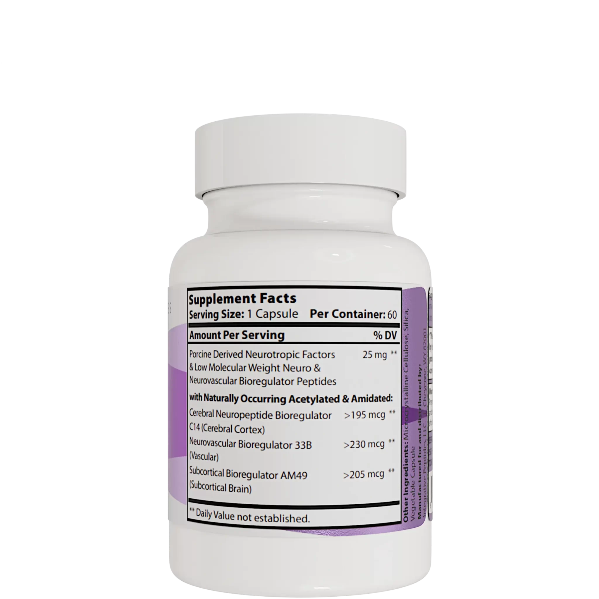 CogniPep is a peptide-based bioregulator formulation that includes porcine-derived neurotropic factors and low molecular weight peptides. The components featured in this product have been referenced in scientific literature and are of interest in academic research focused on neurobiological pathways.