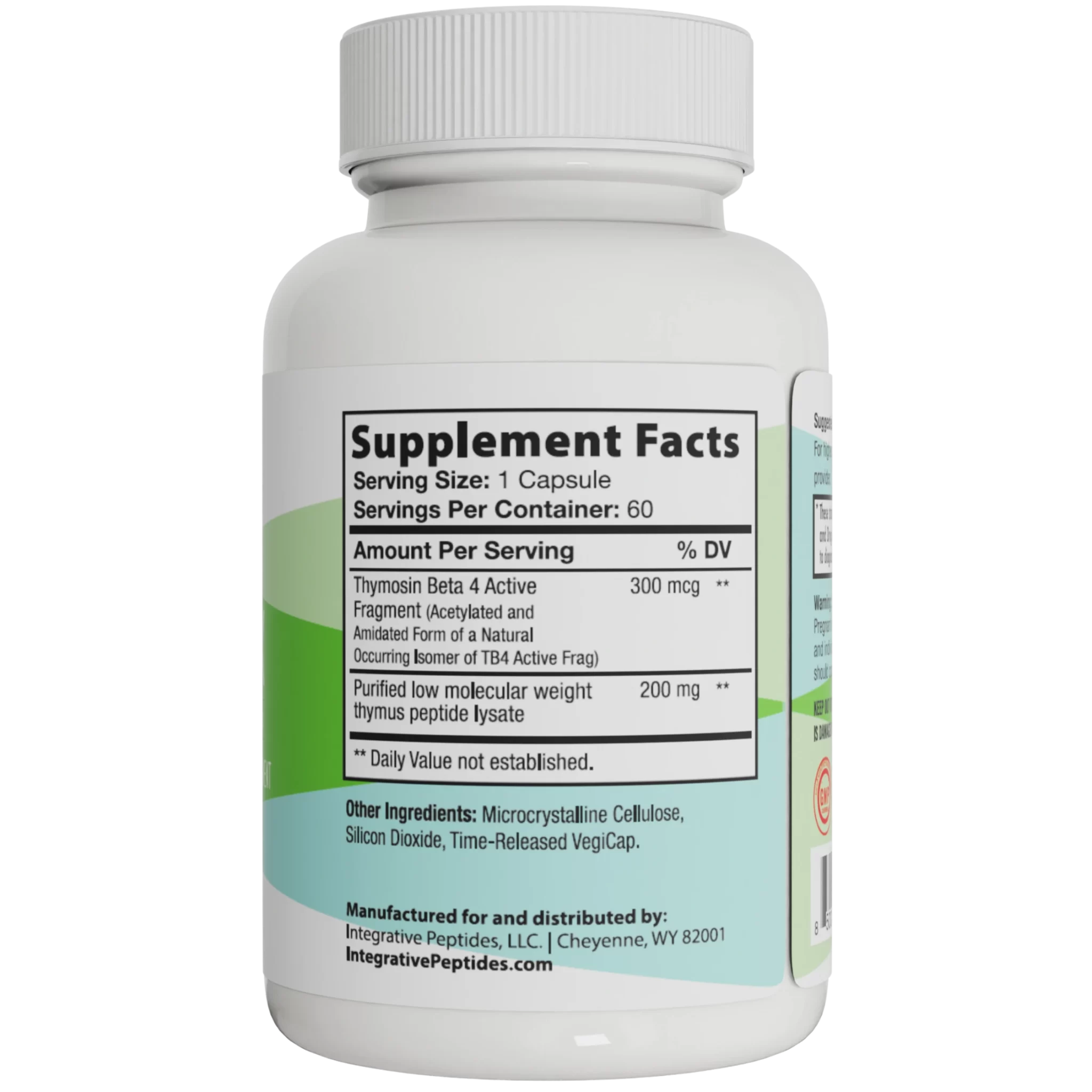 FRAG MAX features a short peptide sequence composed of four amino acids, derived from the larger 43-amino-acid Thymosin Beta 4 (TB4) chain. Its format is developed for convenient capsule delivery.