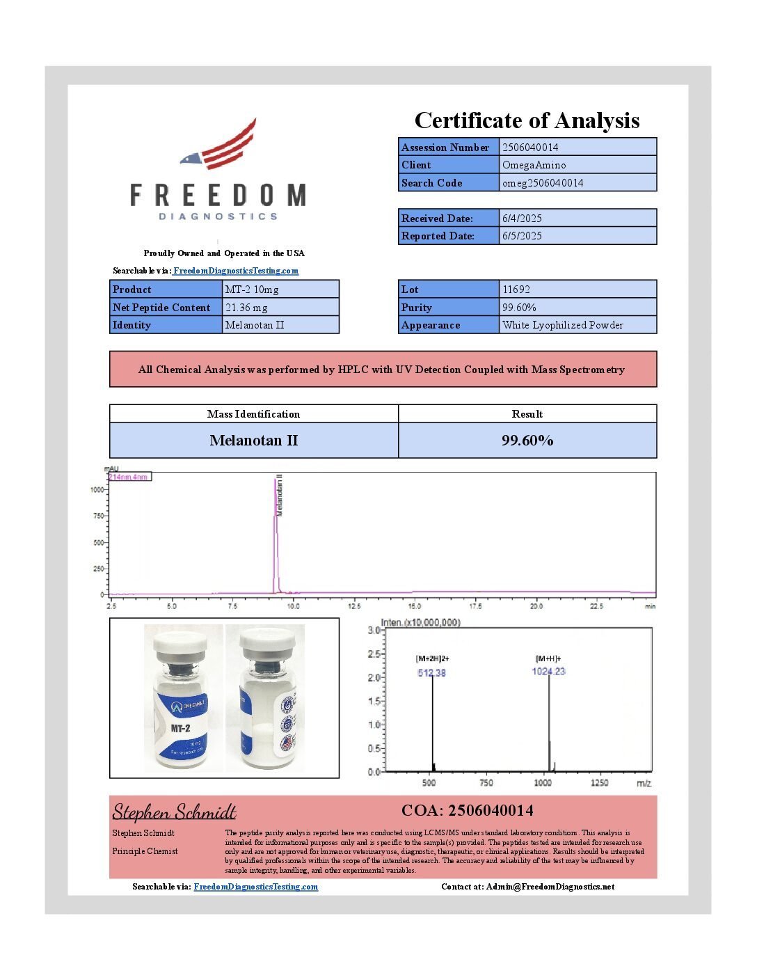 10mg vial. Our U.S. MT-2 powder undergoes third-party testing to ensure purity, authenticity, and potency.